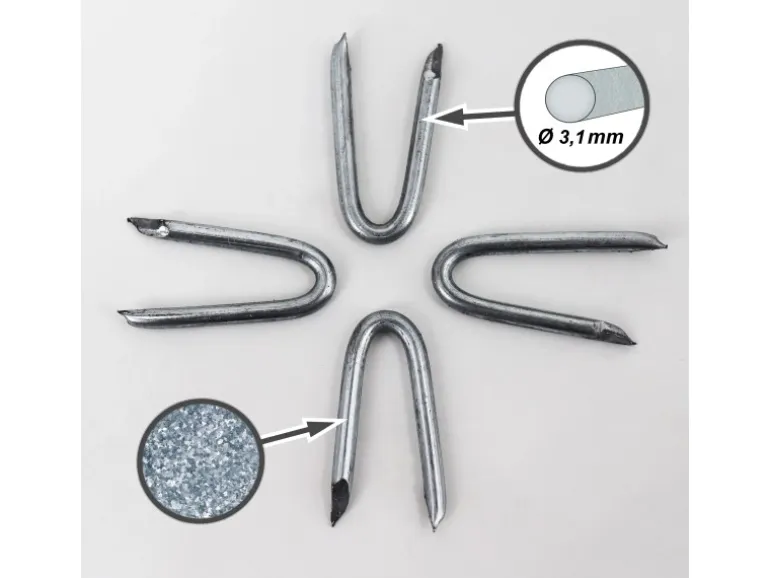 Durch das robuste, dick verzinkte Material eignen sich die U-Nägel für den Außenbereich wie Viehweide oder Wildgehege, aber auch für den Einsatz in Haus und Garten.
