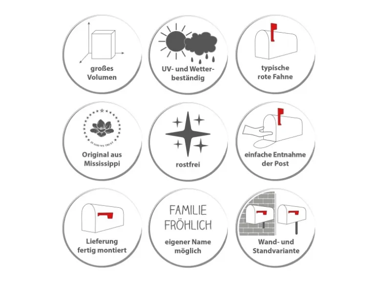 ZEITLOSES DESIGN:Der Banjado Briefkasten im US-Look bietet Ihnen Dank seines großen Fassungsvermögens genügend Platz, auch für große A4 Sendungen. Die typische Rote Fahne zeigt Ihnen an wenn Sie Post haben.