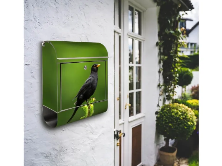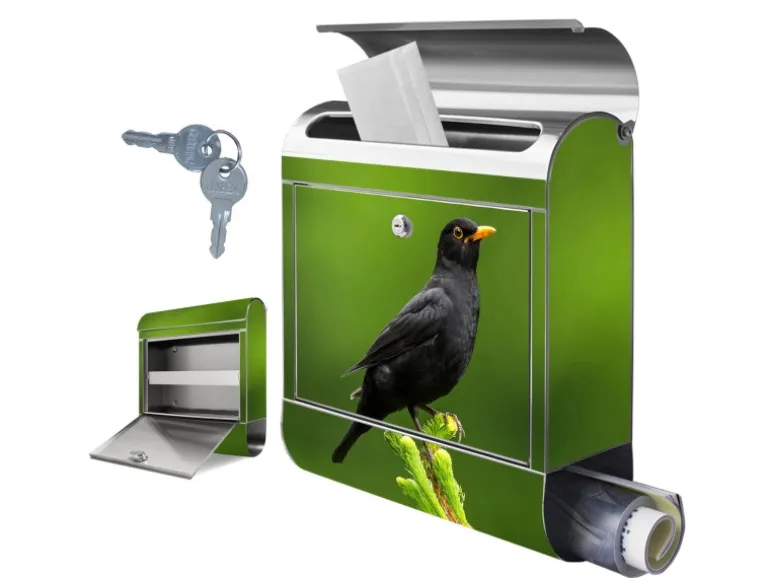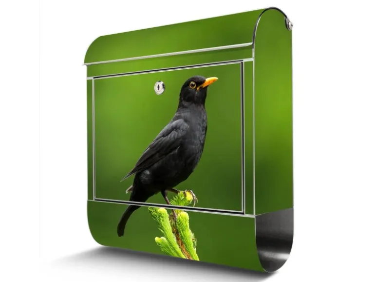 DESIGNDer Motivbriefkasten hat ein sehr ansprechendes und ausgefallenes Design, damit entlocken Sie Ihren Nachbarn und dem Postboten ein Lächeln. Heben Sie Sich ab von der tristen grauen Masse ohne auf Funktionalität zu verzichten.DETAILSDer Design Briefkasten mit Motiv Vogel auf Tannenzweig besteht aus hochwertigem 18/0 Edelstahl. Das Motiv besteht aus einer wetter- und UV-resistenten Folie, die mit einem Schutzlaminat überzogen ist. Der Briefkasten wird mit Montagematerial und zwei Schlüsseln geliefert.