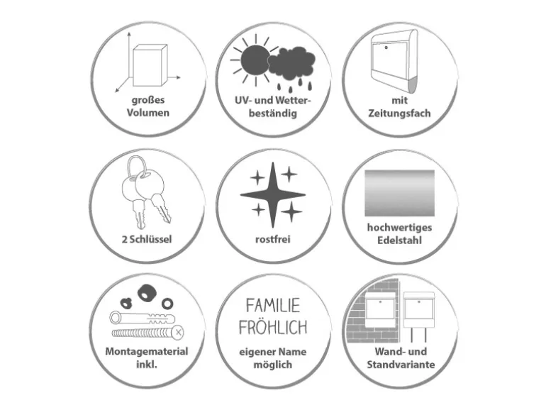 Montage als Wandbriefkasten, Zaunbriefkasten oder Standbriefkasten möglich
