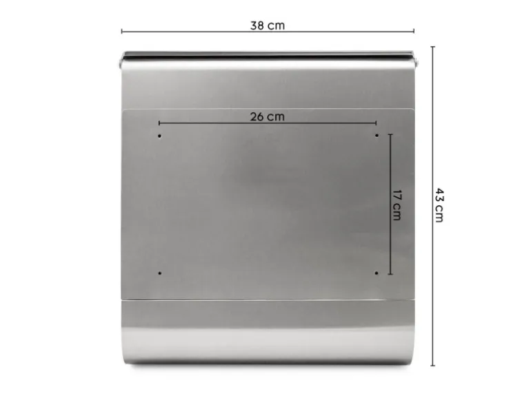 Gesamtgröße: 38x43x12.5cm BxHxT, Briefschlitz: 32,5x3cm BxH, Gewicht: ca. 2,8 kg