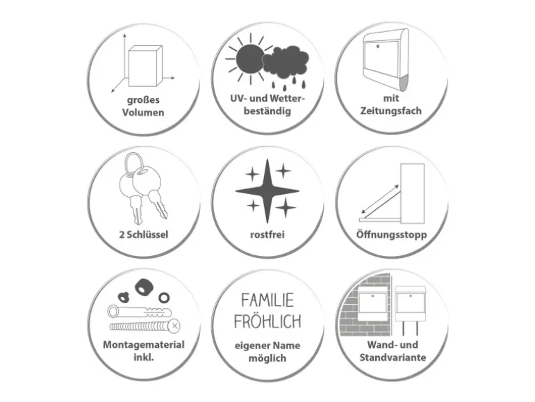 Montage als Wandbriefkasten, Zaunbriefkasten oder Standbriefkasten möglich