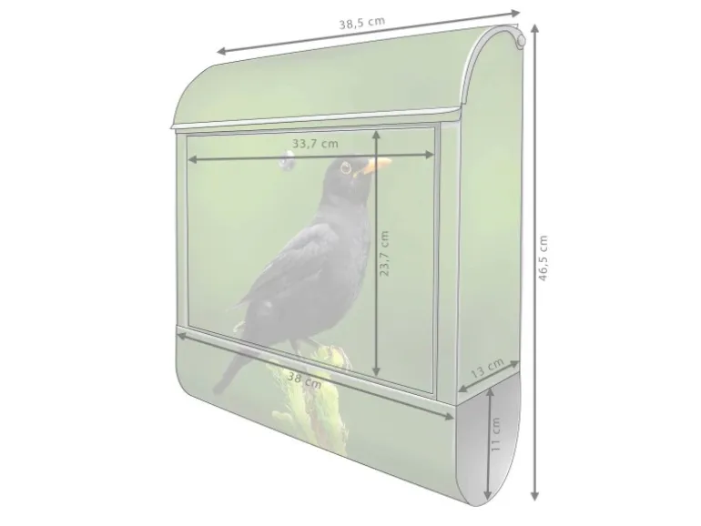 Gesamtgröße: 39x47x14cm BxHxT, Briefschlitz: 33×3,5cm BxH, Gewicht: ca. 3,4 kg