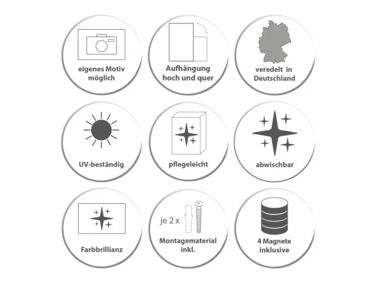 Sie können diese auch dekorativ als Wandbild nutzen, es halten alle handelsüblichen Magnete daran.