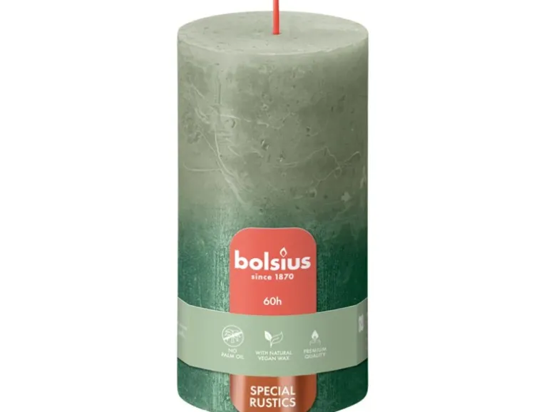 Genießen Sie an dunklen Winterabenden Wärme, Licht und eine glitzernde Atmosphäre im Haus. Mit der Rustik-Kerze von Bolsius, welche aus zwei Grüntönen besteht, wird jeder Moment magisch. Die Rustik-Kerze hat eine grüne Grundfarbe, die in ein intensives und tiefes Olivgrün übergeht. Die Kerze hat eine Höhe von 13 cm und brennt bis zu 60 Stunden.