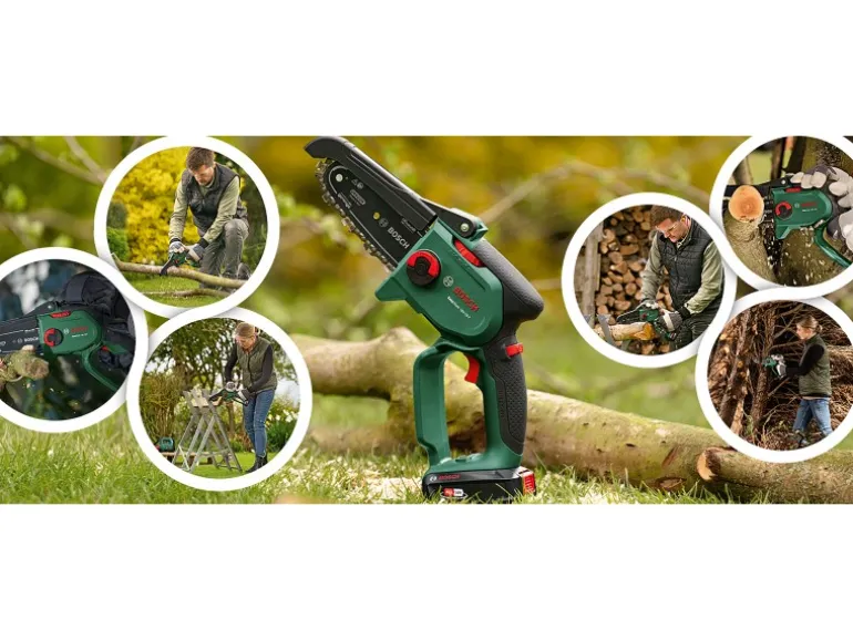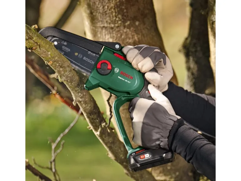 Zum Rückschnitt von Bäumen und zum Zerkleinern von Grünschnitt