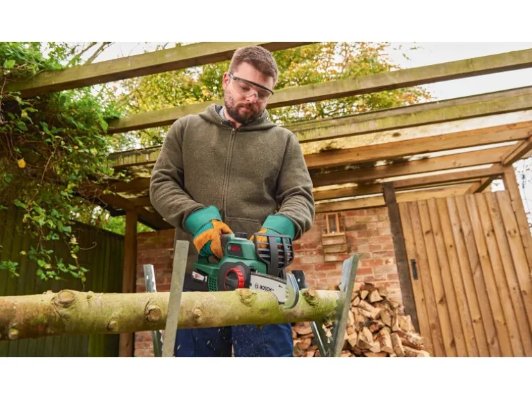 Kraftvolle Akku-Kettensäge für verschiedene Sägearbeiten rund ums Haus