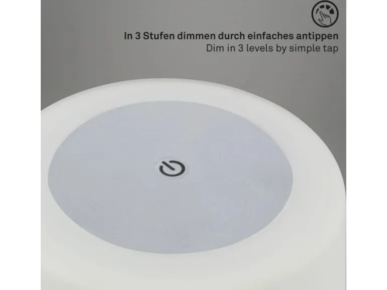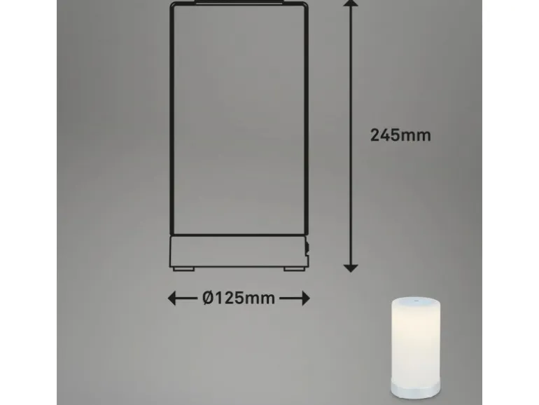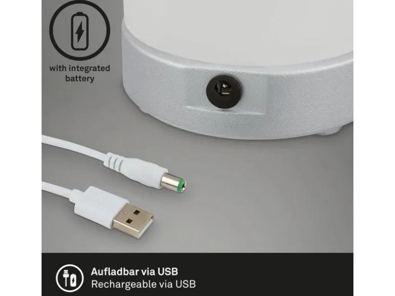 Ihr eingebautes LED-Modul erstrahlt mit 3W und 330 Lumen. Via Touchschalter ist die Leuchte in 3 Stufen dimmbar und kann darüber auch ein- und ausgeschaltet werden. Ihr warmweißes Licht (3.300 Kelvin) bietet eine schöne gemütliche Lichtatmosphäre. Aufladbar ist die Leuchte über USB und wird inklusive USB-Kabel (2 Meter) geliefert. Die Leuchte hat die Maße 245x125mm (HxD).