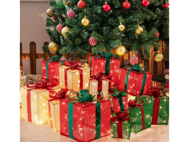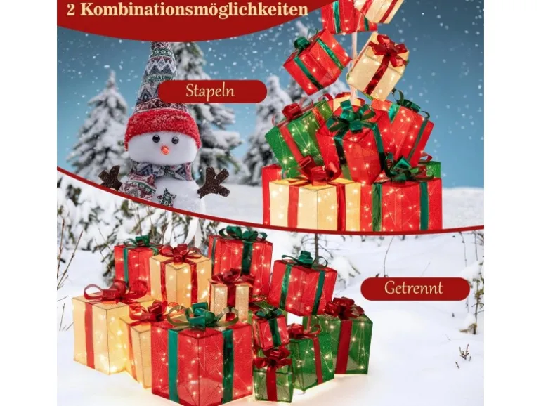 Beleuchteter Geschenkbox-Baum schafft festliche Stimmung