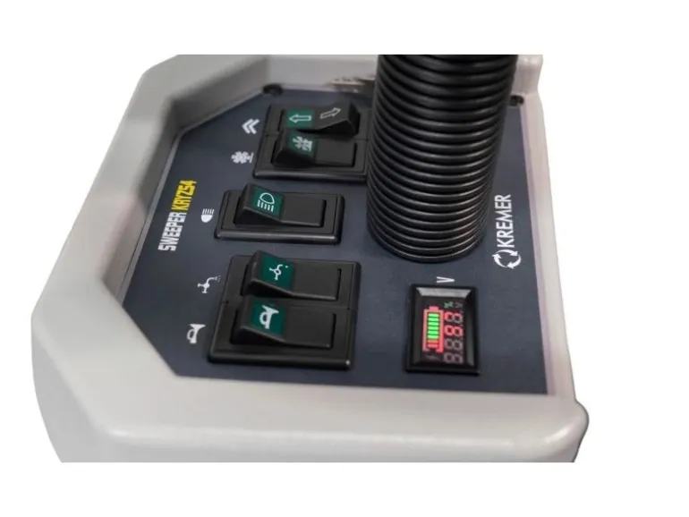 Mit Seiten und Hauptbürste plus 80 L Behälter ist die Kremer Kehrmaschine perfekt für Großeinsätze!