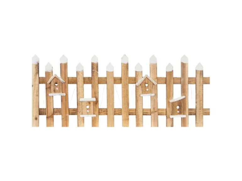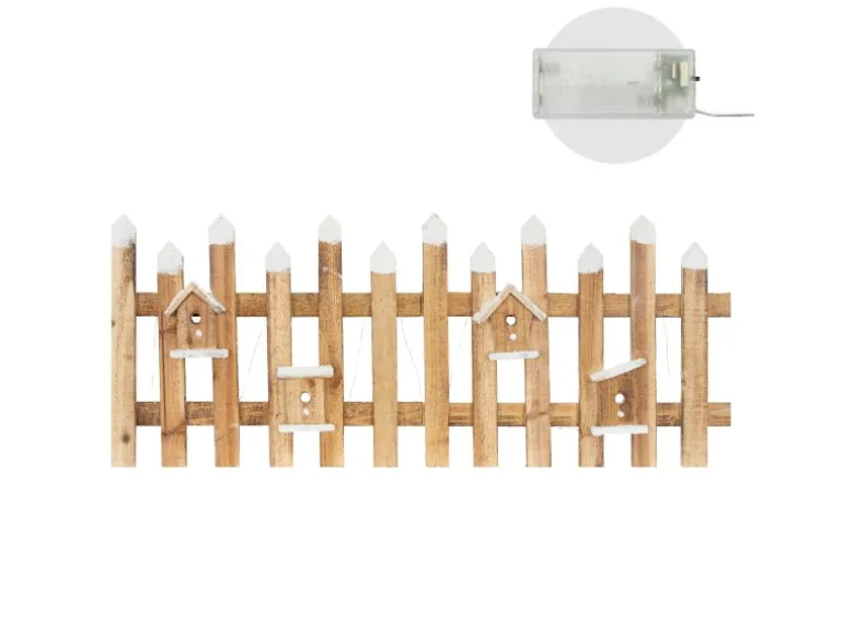 Mini Holz Zaun beleuchtet in Winter-Optik