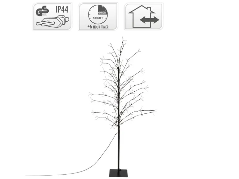 Er verfügt außerdem über einen integrierten 6 Stunden Timer, sodass er ab beginn der Stromzufur 6 Stunden leuchtet und 18 Stunden aus bleibt um Strom zu sparen. Der Baum ist eine schöne Ergänzung für deine Weihnachtsdeko und sorgt für das perfekte Weinachtsambiente.