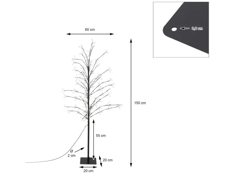 Der winterliche Baum besticht durch 360 LEDs und seinen festen Standfuß. Der quadratische Fuß verfügt über zwei Löcher, sodass du ihn auch dauerhaft und fest installieren kannst. Das hochwertige Material und die gute Verarbeitung sorgen für seine Langlebigkeit. Du wirst diese LED Weihnachtsdeko viele Weihnachten nutzen können.