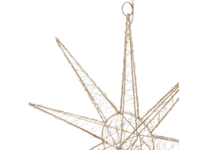 Das goldene Metallgestell, kunstvoll umwickelt mit filigranem Draht, verleiht diesem Weihnachtsstern eine edle Erscheinung, die alle Blicke auf sich zieht. Doch das wahre Highlight ist die warmweiße LED-Lichterkette, die den Stern sanft zum Leben erweckt. Die festliche Beleuchtung erzeugt eine märchenhafte Atmosphäre in deinem Zuhause und verbreitet festliche Freude.
