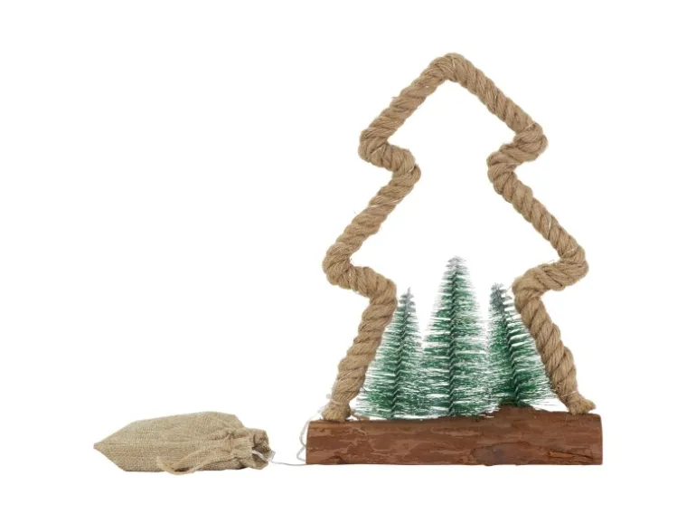1 x Deko Jute Baum mit LED-Lichterkette und 3 kleinen Tannenbäumen von ECD-Germany
