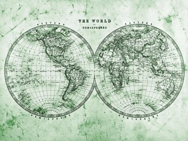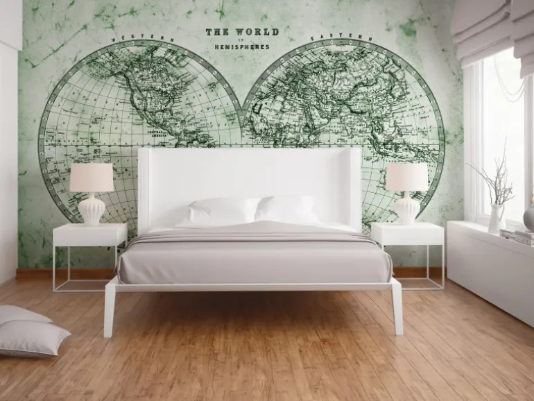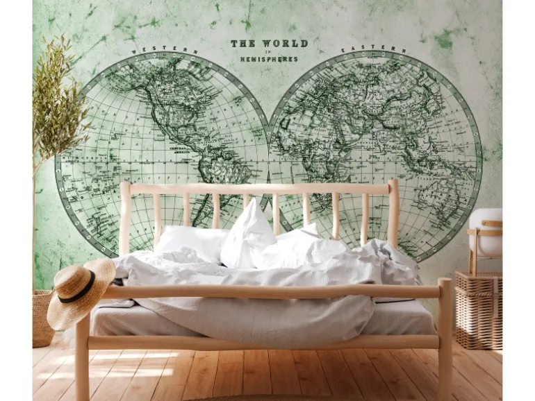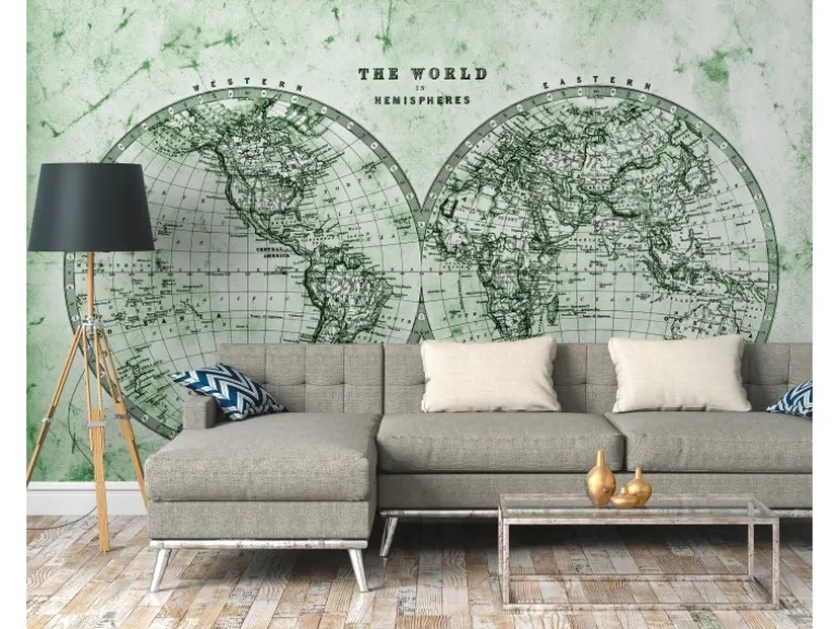 Fototapete Weltkarte Grün Grau Weiß 3,50 m x 2,55 m FSC®