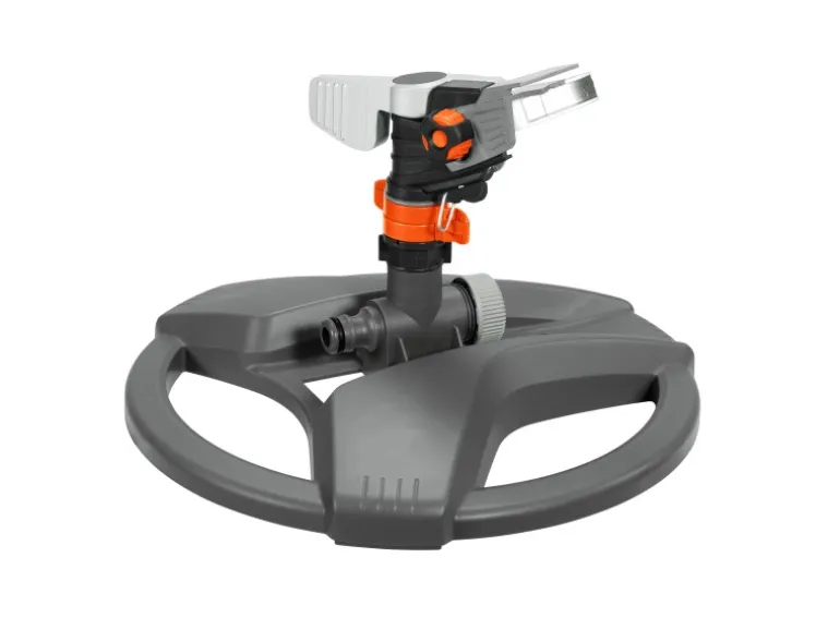 Der Rasensprenkler hat drei Metalleinlagen und ist dadurch robust und stabil. An den Verstellringen regeln Sie die zu bewässernden Sektoren feinstufig von 25° – 360°. Der ausgewählte Sektor ist jederzeit durch diese Verstellringe gut erkennbar.