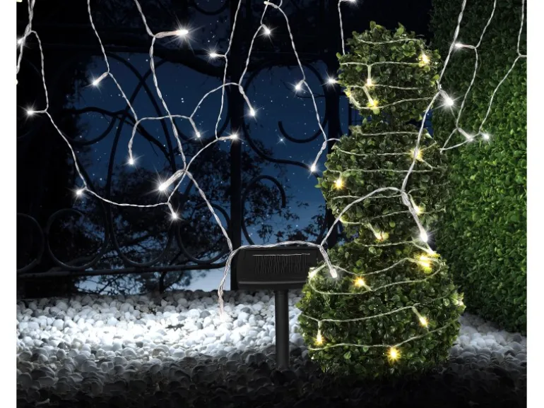 Mit dieser ausgezeichneten Globo LED-Solarlichterkette 120 LEDs Transparent 20 m haben Sie die beste Ausrüstung zum Dekorieren. Die 20 Meter lange Kette, aus schwarzen und transparenten Kunststoff, ist mit 120 Leuchtmitteln bestückt und vom ersten Leuchtmittel zum Solarpanel sind es 3 Meter, was sie sehr flexibel macht. Dank der IP44 Schutzart ist sie außerdem auch für den Außenbereich geeignet.