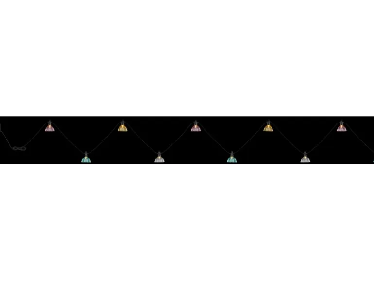 Die Schirme in den Farben Pink, Grün, Klar und Gelb besitzen ein 3.000 Kelvin warmweißes Licht und werden solarbetrieben. Durch einen Druckschalter am inkludierten 3 m langen Zuleitungskabel können Sie die Lichterkette bedienen.