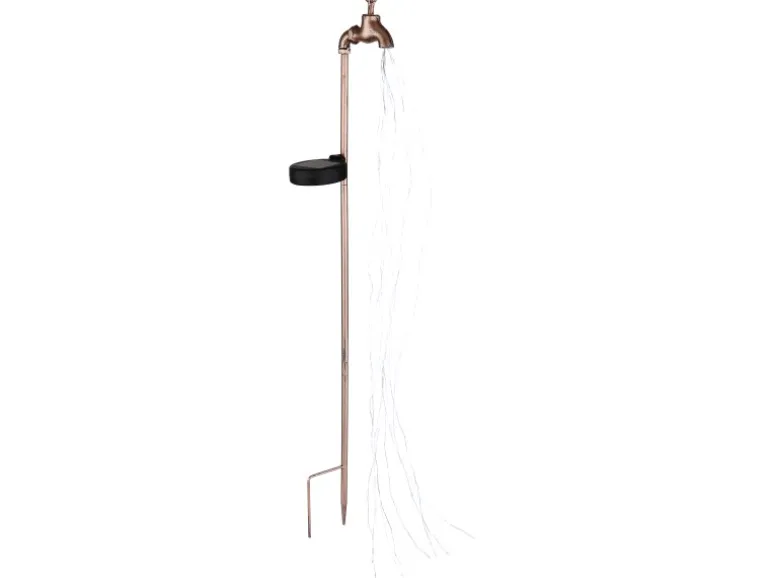 Die Globo Solarleuchte überzeugt durch ein tolles Design. Aus einem Erdspieß ragt eine 1,1 m lange Metallstange zu einem Wasserhahn aus diesem ein Lichtetikettenstrahl mit 60 verbauten LED-Leuchtmitteln verläuft und ein 3.000 Kelvin warmweißes Licht scheint. Durch einen ON/OFF Stufenschalter kann diese Solarleuchte in zwei unterschiedlichen Stufen eingestellt werden und besitzt zudem einen IP44 Schutzgrad gegen Spritzwasser.