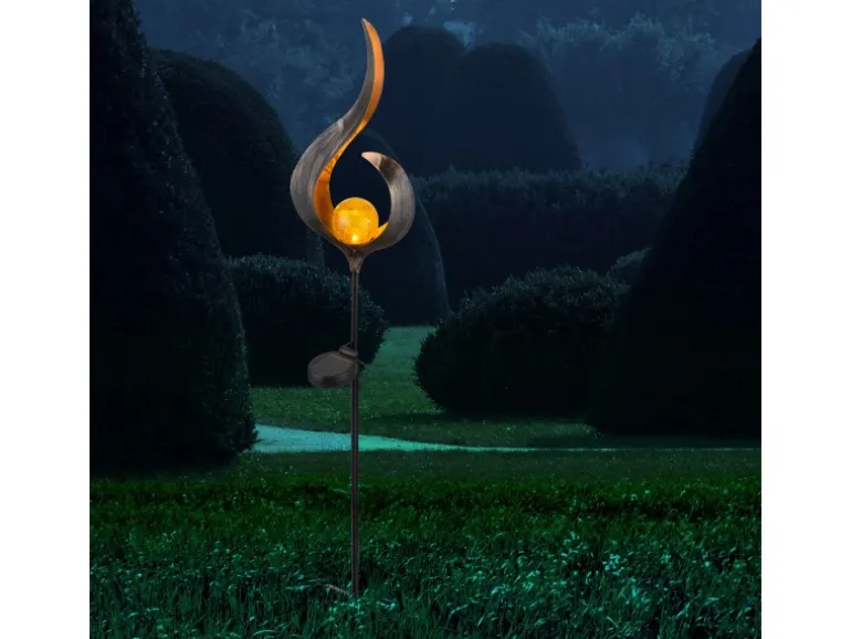 Durch ausgezeichnete Verarbeitung und einem eleganten Aussehen überzeugt diese bronzefarbene Globo Solarlampe aus Metall. Der Lampenschirm welcher eine zerbrochene Glasoptik hat, verleiht der 90 cm großen Lampe den letzten Schliff. Mit ihrer IP44 Schutzart ist sie für den Außenbereich absolut geeignet.