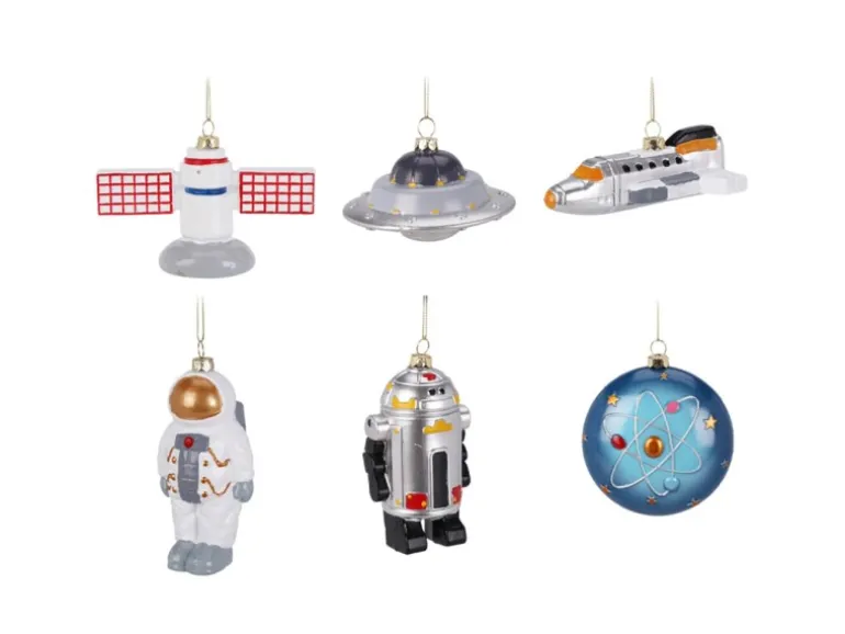 In 7 verschiedenen Motiven erhältlich: Satellit, UFO, Raumschiff, Astronaut, Roboter, Planet