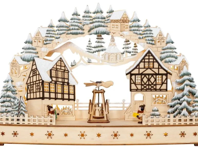 Mit Abmessungen von 44,5 cm in der Breite, 9,5 cm in der Tiefe und 30,5 cm in der Höhe ist die Lichterbogen groß genug, um eine auffällige Präsenz in Ihrer Weihnachtsdekoration zu haben. Die besondere Attraktion das Lichterbogens ist die drehbare Pyramide, die zusätzlich zur Weihnachtsstimmung beiträgt. Die Bewegung der Pyramide verleiht dem Lichterbogen eine lebhafte und faszinierende Note, die die festliche Atmosphäre noch verstärkt.