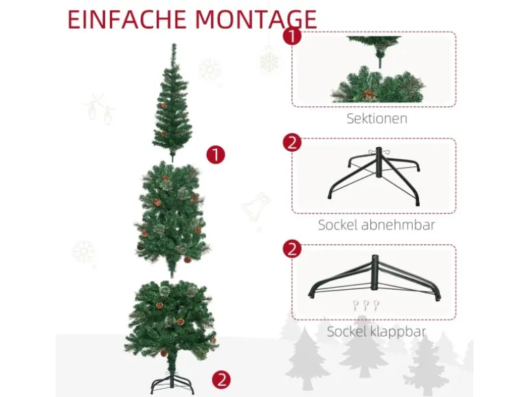 ● Schlanke Form nimmt wenig Platz auf dem Boden oder Tisch ein, ideal für kleine Räume oder als zweiter Weihnachtsbaum im Eingangsbereich