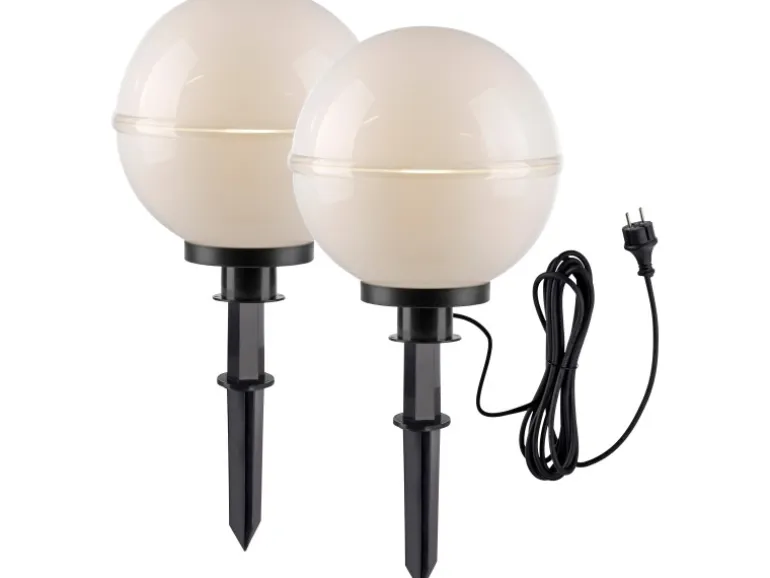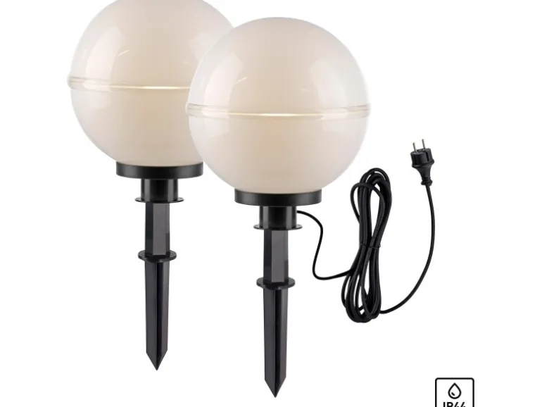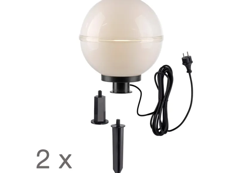 Kombinieren Sie die Kugelleuchten mit einem Leuchtmittel ganz nach Ihrem Geschmack. Gern auch mal mit einem farbigen Leuchtmittel, und setzen damit schöne Farbakzente rund um Haus und Garten. Durch die Schutzklasse IP44 ist sie sowohl für den Innen- aber auch für den Außenbereich geeignet. Im Lieferumfang sind für jede Leuchte ein 5 Meter Kabel, sowie ein Erdspieß enthalten.