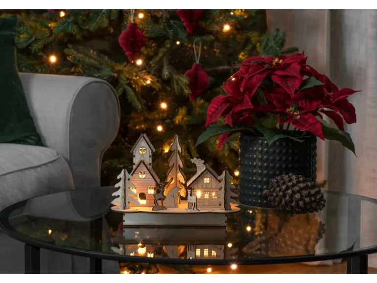 Die filigranen Holzarbeiten rahmen das warm-weiße Licht auf wunderschöne Weise ein und lassen die adventlichen Muster golden strahlen. Ob allein platziert oder in Kombination mit anderen Weihnachtsdekorationen, diese Holzsilhouette zieht alle Blicke auf sich und berührt das Herz. Die Holzsilhouette ist batteriebetrieben und für den Innenbereich geeignet. Sie verfügt über 4 warm-weiße Dioden, die eine angenehme Beleuchtung erzeuge.