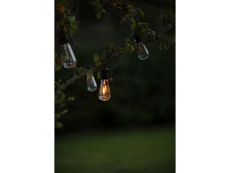 Die Partylichterkette ist 4,5 m lang und verfügt über eine 10 m lange Zuleitung, wodurch sich eine Gesamtlänge von 14,5 m ergibt. Dank IP44-Schutzklasse ist die Lichterkette ideal für den Außenbereich geeignet und überzeugt dabei mit einem robusten schwarzen Kabel sowie einem IP44-Transformator für sicheren Betrieb.
