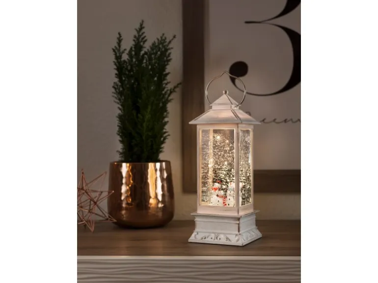 Wunderschöne, nostalgische LED-Schneelaterne für den Innenbereich