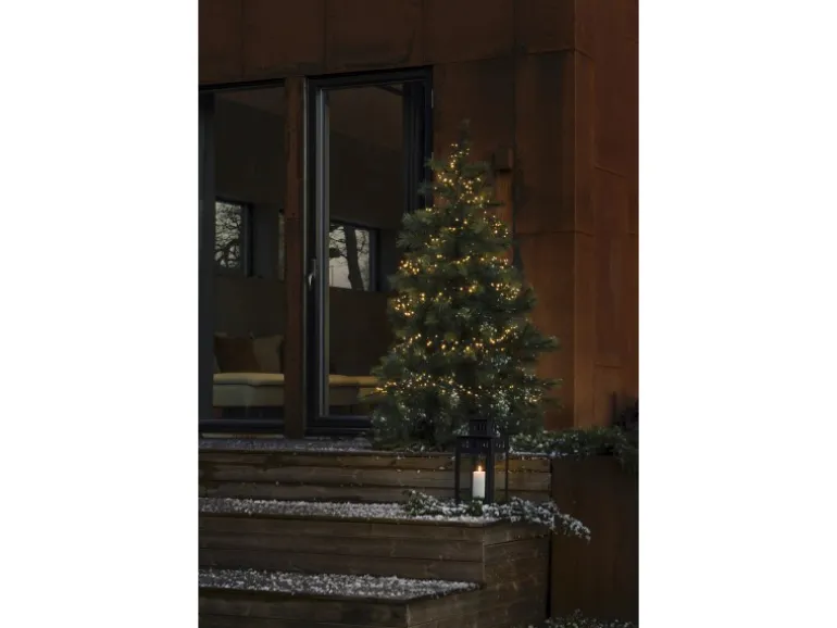 Das schwarze Kabel sorgt für einen dezenten Look und lässt sich unauffällig in die Umgebung integrieren. Die Lichterkette wirkt besonders edel an dunkleren Flächen oder im Garten.