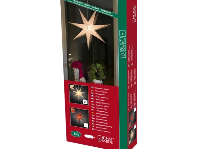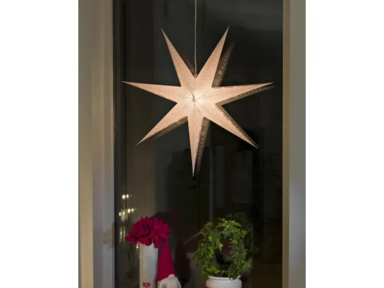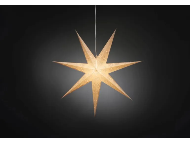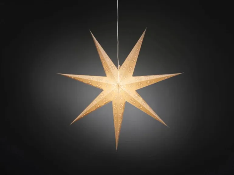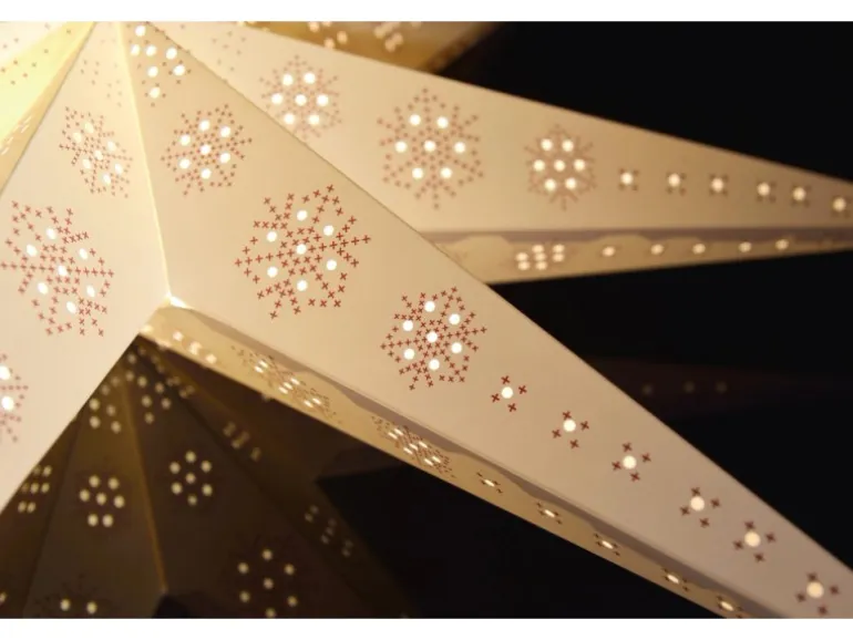 Jeder Papierstern verfügt über ein Anschlusskabel mit an/aus Schalter. Die Lieferung erfolgt ohne Leuchtmittel.