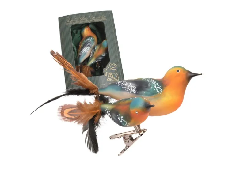 Krebs Glas Lauscha Baumschmuck Doppelvogel Buchfink Mehrfarbig 9cm