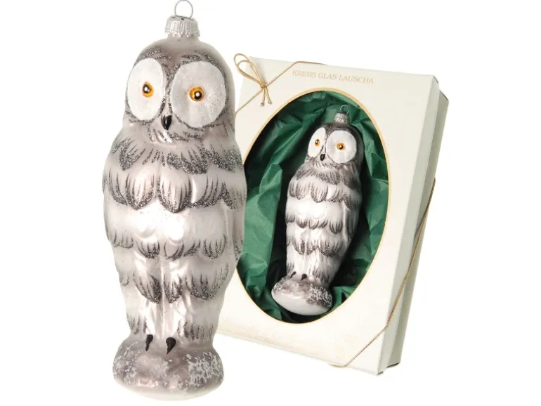 Krebs Glas Lauscha Baumschmuck Schnee-Eule Hedwig Weiß 17cm