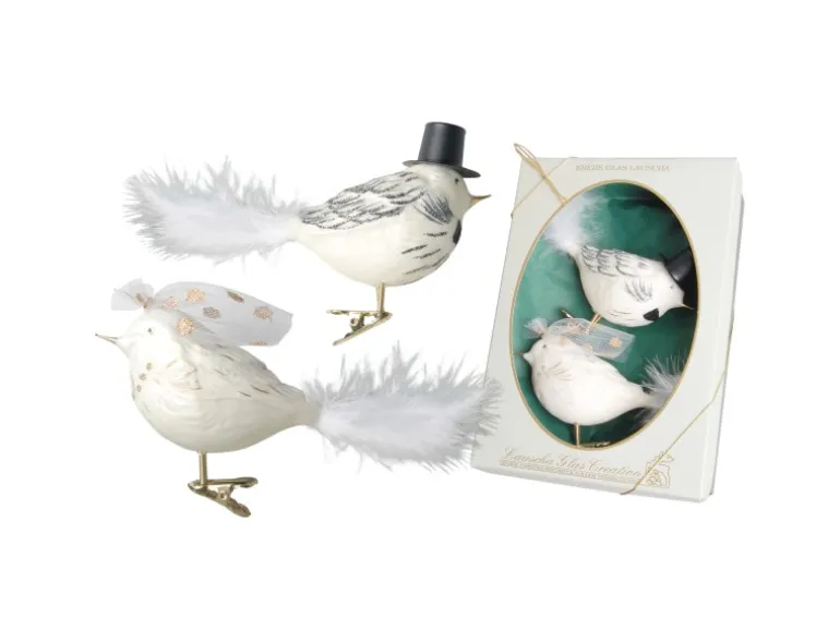 Krebs Glas Lauscha Baumschmuck Vogel Brautpaar Weiß 9cm