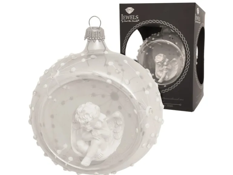 Krebs Glas Lauscha Weihnachtskugel mit Engel Weiß 1-tlg. 8cm