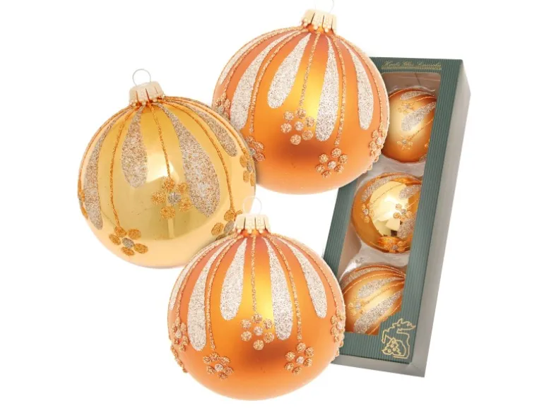 Entdecke den Zauber des Weihnachtswaldes mit unserem exquisiten Glaskugel-Set Blumen & Blätter! Diese 3-teilige Kollektion in Safran Satin/Gold Glanz verleiht deinem Christbaum einen Hauch von Eleganz und Glamour. Jede Kugel wurde sorgfältig mundgeblasen und handdekoriert, wodurch sie zu einem einzigartigen Kunstwerk wird. Das florale Dekor mit Gold und Silber Glitter verleiht diesem Set einen festlichen und luxuriösen Look, der jeden Raum erstrahlen lässt. Unsere Glasornamente sind nicht nur ein Blickfang, sondern auch eine schöne Erinnerung an die festliche Jahreszeit. Mit einer Größe von 8cm passen diese Kugeln perfekt zu jedem Baum und fügen eine edle Note hinzu. Hol dir jetzt dieses exklusive Set, um deinen Weihnachtsbaum in eine glänzende Oase zu verwandeln und die festliche Stimmung in dein Zuhause zu bringen. Gönn dir etwas Besonderes mit unserem Baumschmuck aus echtem Glas!