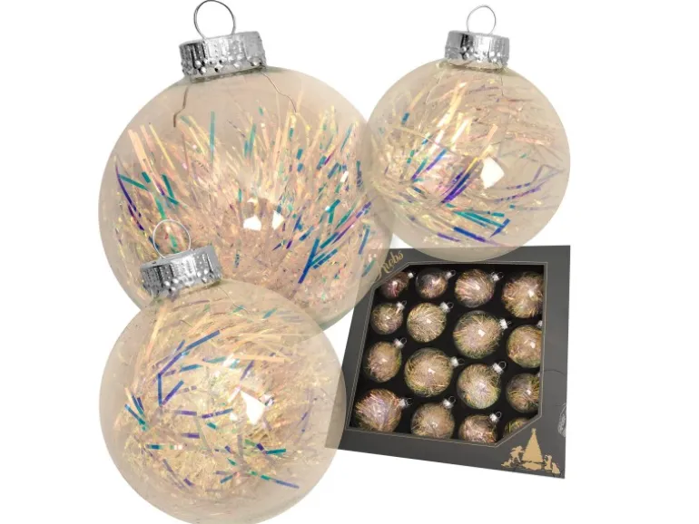 Krebs Glas Lauscha Weihnachtskugeln Kugelsortiment Lametta Goldfarbig 8cm