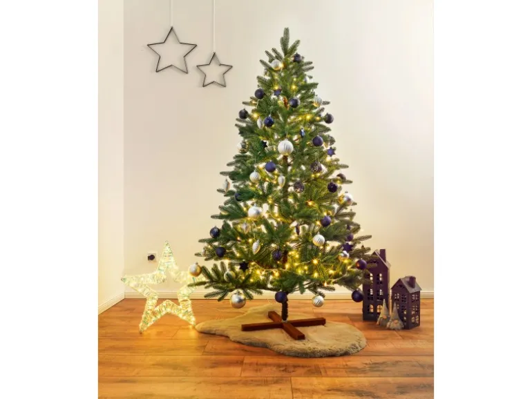 Ausgestattet mit stabilem Holz-Baumständer zum direkten Aufstellen