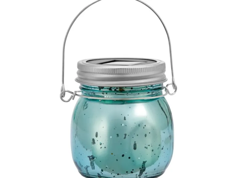 Solar-Dekoleuchte aus Glas Ø 8 cm x 9 cm Blau mit Aufhängebügel