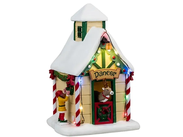 In dieser bezaubernden Miniatur präsentiert Dancer, eines der fröhlichen Rentiere des Weihnachtsmanns, seine anmutigen Dekorationen und schillernden Ornamente.