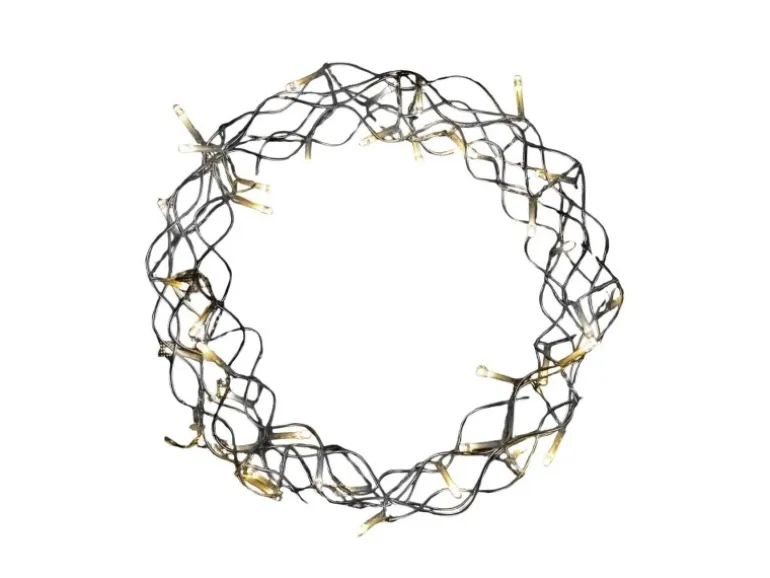 Geschmückt durch eine batteriebetriebene Lichterkette mit 40 LEDs und eine Diagonale von 30 cm formen diesen flexibel einsetzbaren Weihnachtskranz. Durch das transparente Kabel passt der Kranz optisch in jede Umgebung. Zusätzliche Timerfunktion (6/18h) und eine Kabelzuleitung von 3 Metern.