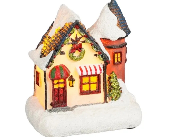 Dank der kompakten Maße von 9 cm x 6,5 cm x 9 cm passt die Miniaturstadt perfekt in jedes Weihnachtsdorf, auf Fensterbänke oder als festliche Dekoration im Zuhause. Eine wunderschöne Ergänzung für Sammler und Weihnachtsliebhaber. Batterieart AG13/3 Stück (nicht enthalten).