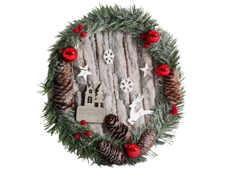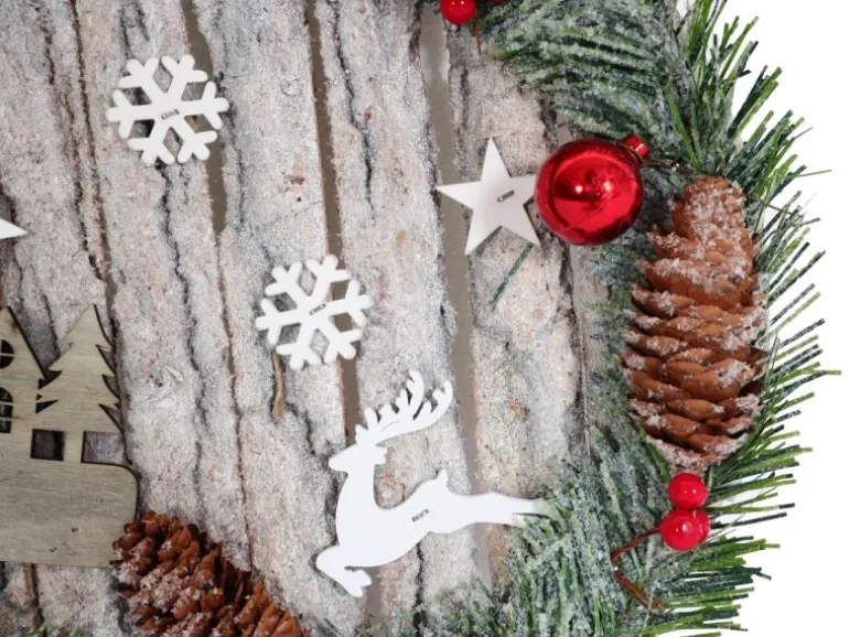 – Dieser Türkranz ist ein wahrer Blickfang. Von glänzenden Christbaumkugeln bis hin zu echten Kiefernzapfen – dieses Kunstwerk mit Liebe zum Detail verbindet den Charme der Natur mit einer eleganten Note.