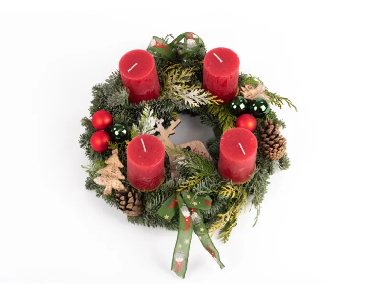 Dekorativer Mischkranz mit Rustikokerzen