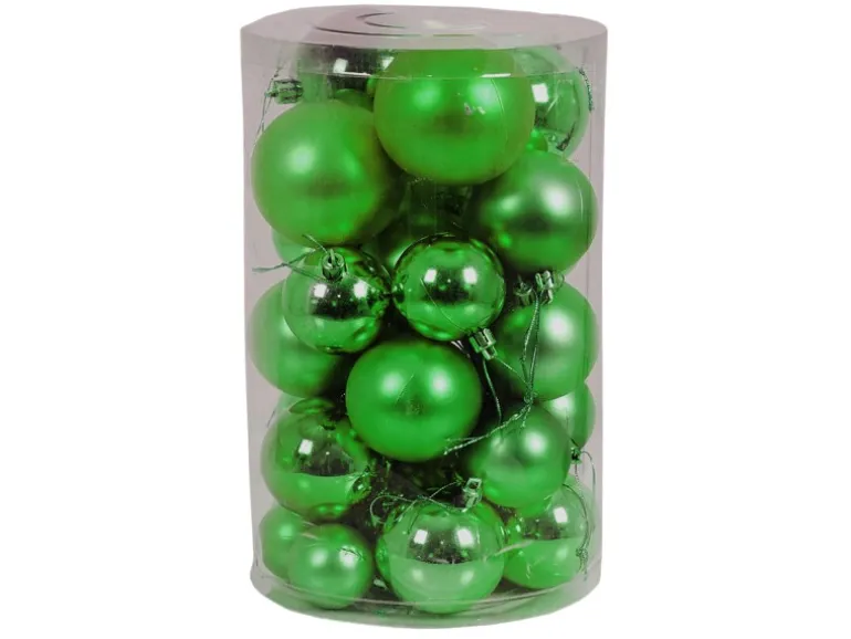 30 tlg Christbaumkugel Set Limegrün Vier Größen für einen festlich geschmückten WeihnachtsbaumVerleihen Sie Ihrem Weihnachtsbaum einen modernen und eleganten Look mit diesem wunderschönen 30 teiligen Kugelset in festlichem Limegrün. Jahr für Jahr stellt sich die Frage wie der Baum am schönsten geschmückt werden soll und mit diesen Kugeln haben Sie die perfekte Antwort gefunden. Sie bringen nicht nur festlichen Glanz an Ihren Baum sondern schaffen auch eine warme weihnachtliche Atmosphäre die jedes Zuhause erstrahlen lässt.Die limegrünen Christbaumkugeln sind in vier verschiedenen Größen 4 5 6 und 7 cm enthalten und bieten dadurch eine harmonische Mischung aus Tiefe und Variation. Unterschiedliche Oberflächenstrukturen teils glänzend teils matt sorgen für ein elegantes Zusammenspiel von Licht und Reflexion und machen Ihren Weihnachtsbaum zu einem echten Blickfang. Die edle grüne Nuance lässt sich wunderbar mit Silber Gold oder Weiß kombinieren und passt perfekt zu jeder Weihnachtsdekoration.Ob klassisch am Baum in einer hübschen Schale auf der Kommode oder dekorativ in einem Glasgefäß arrangiert diese Kugeln sind vielseitig einsetzbar und setzen überall festliche Akzente. Da sie aus robustem Kunststoff bestehen sind sie besonders langlebig und ideal auch für Familien mit Kindern oder Haustieren geeignet. Die Aufhänger sind bereits vormontiert sodass Sie sofort mit dem Schmücken beginnen können.Mit diesem 30 teiligen Christbaumkugel Set in knalligem Limegrün schaffen Sie eine festliche harmonische Weihnachtsstimmung stilvoll modern und einfach wunderschön.