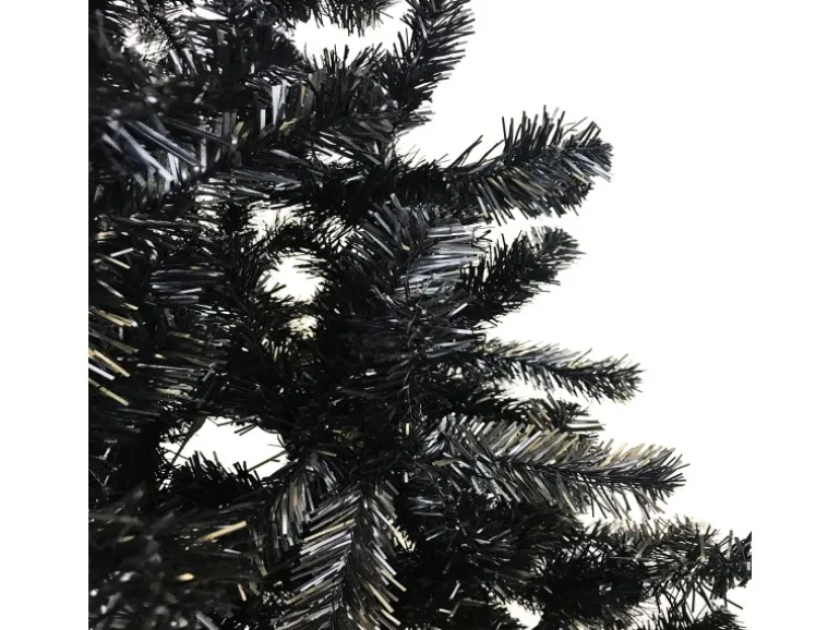 Künstlicher Tannenbaum 150 cm mit stabilem MetallständerBringen Sie mit diesem künstlichen Tannenbaum inklusive stabilem Metallständer sofort weihnachtliche Stimmung in Ihr Zuhause, Büro oder Geschäft. Mit einer Höhe von 150 cm wird der Baum zum echten Blickfang. Die schwarzen Nadeln im modernen Folienschnitt wirken elegant und stilvoll, während der grüne Metallständer für sicheren Halt sorgt und gleichzeitig harmonisch aussieht. Dank des einfachen Stecksystems können die Baumteile mühelos zusammengesetzt und die Zweige direkt in Form gebracht werden, sodass der Baum innerhalb weniger Minuten einsatzbereit ist. Nach den Feiertagen lässt er sich ebenso leicht wieder auseinanderbauen und platzsparend verstauen. Der Baum ist langlebig, wiederverwendbar und bietet eine praktische sowie stilvolle Lösung für jede Weihnachtsdekoration, sodass Sie Jahr für Jahr ohne Aufwand eine festliche Atmosphäre schaffen.