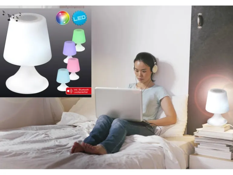 Die Leuchte verschönert Ihr Zuhause zum einen mit ihren tollen 12 bunt leuchtenden LEDs, zum anderen bietet sie die Möglichkeit zum Beispiel auf Partys Musik zu spielen. Die Leuchte beinhaltet zudem einen Akku und hat eine hohe Lebensdauer von 20.000 Stunden.